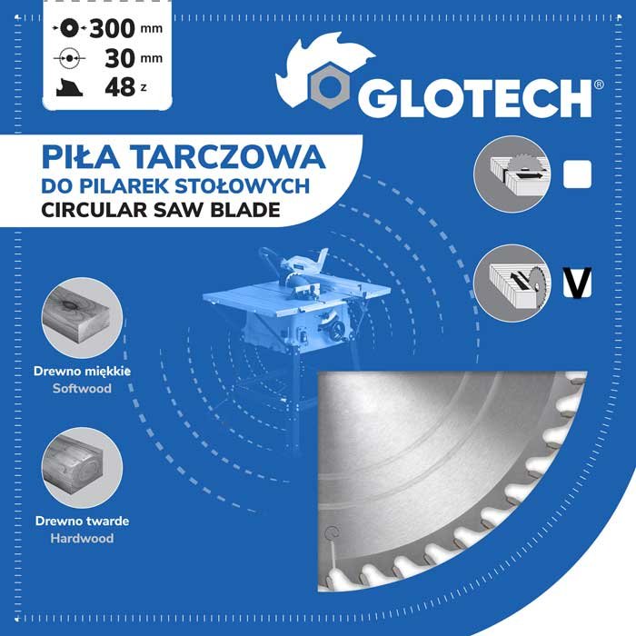 GLOTECH - Tarcze z węglikami spiek. (GS) do cięcia poprzecznego drewna - do pilarek stolikowych
